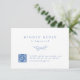 A mão russa ilustrou folhas botânicas e fontes clássicas modernas em azul e branco, Simples e elegante. Cartão RSVP excelente com código QR para casamento clássico moderno, casamento formal simples, casamento botânico elegante. Veja todas as peças correspondentes na coleção.