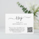 Cartão RSVP de casamento chic que apresenta "rsvp" em um guião elegante. Introduza o endereço do Web site do casamento para criar um código de QR digitalizável para os seus convidados a RSVP online. As costas mostram seus nomes e a data do casamento juntos com um coração.