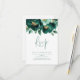 Verde esmeralda e florais dourados Script Código QR Casamento RSVP fazer conveniente para seus hóspedes responderem digitalizando seu código QR levando à página de resposta do site de casamento. O RSVP está em um script na moda e personaliza facilmente o resto das palavras para você e substitui o código QR de amostra no verso pelo seu simplesmente mudando o URL de amostra para o do seu próprio site.