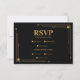 Cartão RSVP Casamento de Deco de Arte Dourada e Preta Elegante