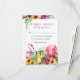 Cartões de resposta de casamento exótico na ilha com um fundo branco elegante que pode ser alterado para qualquer cor, uma disposição tropical de flores de hibisco, abacaxi, coco, flamingos e um modelo de RSVP de casamento moderno.