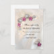 Emparelhe o elegante cartão de resposta RSVP de casamento Faux Pearl e Pink Diamond com os convites correspondentes para criar um conjunto coordenado de papelaria. Personalize-o com a data de resposta do seu casamento específico. Este elegante cartão de noivado da r.s.v.p. apresenta uma fotografia de uma pérola branca vintage e botões de diamante rosa com um fundo branco.
