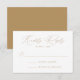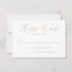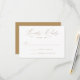 Cartão RSVP de casamento minimalista e moderno, com data RSVP e texto de aceitação/declinação personalizado. "Resposta gentil" é exibido em um script de caligrafia dourada. O fundo branco pode ser alterado para uma cor de sua escolha. Projetado para coordenar com a nossa coleção de casamento do Modern Elegance.