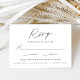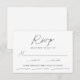 Cartões RSVP de casamento simples e elegantes, com um roteiro preto e manuscrito misturado com cartazes modernos contra um fundo branco. Personalize as placas de RSVP de casamento minimalistas com a data de resposta desejada, o personalizado aceita/declina o texto e as opções de refeição. As cartas de RSVP de Casamentos Brancos e Negros são a escolha perfeita para casamentos modernos.