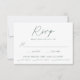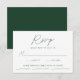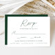Cartões RSVP de casamento simples e elegantes, com um roteiro verde e manuscrito misturado com cartazes modernos, em um fundo branco. Personalize as placas de RSVP de casamento minimalistas com a data de resposta desejada, o personalizado aceita/declina o texto e as opções de refeição. As cartas de RSVP de Casamentos Verdes são a escolha perfeita para casamentos modernos.