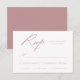 Cartão RSVP de casamento simples com "RSVP" exibido em um script de caligrafia de rosa empoeirado moderno com fundo branco (ou cor de sua escolha). Personalize a placa RSVP rosa empoeirada com a data de resposta desejada, o personalizado aceita/declina a redação e introduz opções. O cartão RSVP de Caligrafia de rosa empoeirada foi projetado para coordenar com nossa coleção de casamento Elegante da Caligrafia.