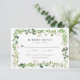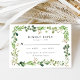 Cartões RSVP de Casamentos Elegantes e botânicos apresentando um quadro retangular de folhagem aquosa em tons de primavera e verde-musgo. Personalize as placas de RSVP de casamento boho verde com a data de resposta desejada, o personalizado aceita/declina a redação e as opções de menu. A placa de RSVP botânica moderna foi projetada para coordenar com nossa coleção de casamento Watercolor Greenery.