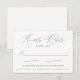 Cartão RSVP de casamento minimalista e moderno com a data de RSVP, o personalizado aceita/declina o texto e as opções de refeição. "Responder gentilmente" é exibido em um roteiro de caligrafia roxa-vinho. O cartão RSVP de casamento do guião roxo foi projetado para coordenar com a nossa coleção de casamento do Modern Elegance.