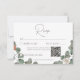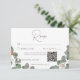 Este cartão de resposta do casamento com um design de código QR apresenta um simples, verde-aquarela suave e spray de eucalipto ferrugem no fundo de sua escolha de papelaria. É delicado, elegante e subestimado. Criado pela imprensa simplesmente de farmácia.