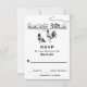 Este cartão RSVP de casamento apresenta duas galinhas por galo e galinha apaixonada. Eles são colocados contra uma charmosa fazenda de desenho do país feita em preto e branco.