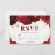Cartão RSVP Casamento de Flores Douradas e Vermelhas por Aquar
