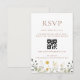 Um design caprichoso inspirado em prados encontra a conveniência. Este cartão apresenta flores silvestres delicadas e elegantes e um código QR proeminente para rastreamento rápido de convidados online. Perfeito para casamentos em jardim ou cottagecore.