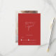 Anuncie seu dia especial com nosso Cartão RSVP de Foto Simples de Script de Crimson Vermelho Minimalista. Esta elegante e moderna design combina o chic clássico com um guião branco limpo, num fundo vermelho impressionante, perfeito para a celebração da na moda. Preencha seu pacote com as placas "Salvar a Data", as placas RSVP e as notas "Obrigado", cada uma projetada para manter a mesma simplicidade sofisticada. Personalize o seu convite com uma fotografia para criar um eterno para os seus convidados.