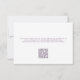 Esta Carta RSVP de Casamento Floral Elegante Púrpura Lilac apresenta flores delicadas sobre um fundo púrpura claro, complementada pela tipografia contemporânea. Os convidados podem escrever os seus nomes e preferências alimentares, ou podem utilizar o código QR no verso para responder online. Ele é totalmente personalizável com os nomes dos casais e responde por data, bem como o Código QR e as instruções na parte traseira. A design formal e o texto vão adicionar um toque de elegância à sua celebração de casamento. Se você não quiser usar o Código QR, basta excluir o URL e as instruções na parte traseira. Este cartão RSVP é maravilhosamente emparelhado com o Convite Laranja Verona Sunset.