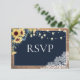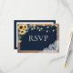 Cartão RSVP Casamento de Madeira com rendas de girassol azul-M