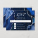 Cartão RSVP Casamento de mármore marinho Blue e Silver Agate