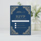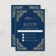 Cartão RSVP Casamento de Moldura Azul e Muçulmano Dourado