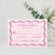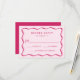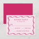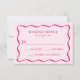 Apresentando nossa placa RSVP da coleção Modern Wavy Frame, onde a sofisticação encontra estilo. Apresentando a assinatura do quadro de onda cor-de-rosa-escuro contra um fundo de rosa claro, esta placa de RSVP retroativa adiciona um toque de estilo à sua suíte de casamento. Simplifique seu planejamento e eleve sua experiência de casamento com nosso cartão RSVP de Quadro de Ondas Moderno Rosa.