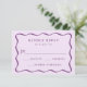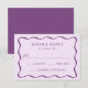 Apresentando nossa placa RSVP da coleção Modern Wavy Frame, onde a sofisticação encontra estilo. Apresentando a assinatura do quadro de onda roxa escura contra um fundo roxo claro, este cartão RSVP retrô adiciona um toque de estilo à sua suíte de casamento. Simplifique seu planejamento e eleve sua experiência de casamento com nosso cartão RSVP de Quadro de Onda Roxo Moderno.