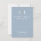 Este cartão de confirmação de casamento azul poeira e dourado pode ser personalizado com as iniciais do seu monograma e informações do evento. Criado por Thisisnotme©