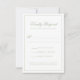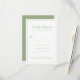 Este cartão de resposta de casamento formal apresenta uma paleta clássica de verde sage com tipografia de roteiro elegante e um layout de borda refinado. A frente oferece um formato de resposta limpo e fácil de completar, enquanto a parte traseira apresenta um monograma atemporal com as iniciais do casal e a data do casamento. Projetado para se coordenar perfeitamente com um conjunto de casamento clássico ou inspirado em jardim, este cartão de resposta adiciona um toque final polido e coeso ao seu