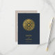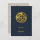 Um design de passaporte de casamento de destino azul marinho com bússola dourada e elementos viagem. Este design é ideal para todos os casamentos de Primavera, Verão, outono e inverno. Um marinho de viagem de casamento elegante, azul e dourado, com a disposição do passaporte e o mapa mundial. Um design de resposta de RSVP de destino moderno com elementos elegantes. Os convites de casamento e outros artigos de papelaria também estão disponíveis.