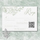 Elevem seu dia especial com nosso elegante e vintage cartão de resposta ao casamento do estilo barroco com um código QR, uma obra-prima de elegância do eterno. Apresentando uma delicada borda verde de sage francesa com delicadas flores de arte em linha sobre um fundo branco pristino, esta design exude o charme clássico e a sofisticação. Sua simplicidade destaca seus detalhes refinados, criando um design tão gracioso quanto sua história de amor. Perfeito para aqueles que apreciam tradição e elegância. Criado pela imprensa simplesmente de farmácia.