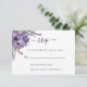 Cartões RSVP de Casamento de Lavanda Floral Púrpura Elegante. Cores de água flórica com vários tons roxos, lavandas, ameixa roxa empoeirada e muito mais. Verifique na coleção se há convites de casamento de cor correspondentes, salve as datas, adesivos, envelope e muito mais.