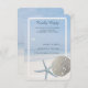 Estas cartas de RSVP são perfeitas para qualquer casal planejando um casamento elegante na praia. A design apresenta um dólar de areia cremoso e um peixe-estrela azul-claro com um fundo azul esmaecido de praia. A design está acabada com uma delicada borda de areia. O design simples e fresco pode ser personalizado para se adequar ao seu evento especial e será o cartão de resposta perfeito para qualquer festa temática na praia, incluindo chás de panela, noivados, chás de casamento, festas de aniversário e muito, muito mais.
