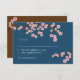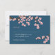 Belas flores de cerejeira e um casal de passarinhos num fundo azul naval adornam este simples e elegante convite de casamento. Este design é perfeito para casamentos temáticos asiáticos ao ar livre em jardins à noite.