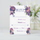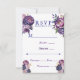 Cartão RSVP Casamento de Púrpura Elegante e de Penas Magenta