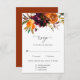 Cartão RSVP de casamento floral russo com cor d'água pintada com tons quentes e sujos de laranja queimada, terracota e burgundy profunda junto com um pouco de verde. O modelo permite que seus convidados indiquem a escolha da refeição. Esta elegante placa RSVP com os tons ricos do outono é excelente para um casamento outono.