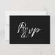 Este cartão RSVP de casamento moderno apresenta um roteiro branco com a palavra "RSVP" em um fundo preto. A frente da placa tem todos os detalhes de RSVP, incluindo opções de refeições em caligraq preto em um simples fundo branco. Por favor, veja o nosso compro I Love Weddingz para encontrar mais seleções nesta coleção. Desenhada por Susan Coffey.