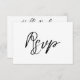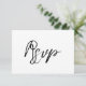 Este cartão RSVP de casamento moderno apresenta um roteiro preto com a palavra "RSVP" em um simples fundo branco. A parte traseira da placa tem todos os detalhes de RSVP em caligrafia preta sobre fundo branco. Por favor, veja o nosso compro I Love Weddingz para encontrar mais seleções nesta coleção. Desenhada por Susan Coffey.