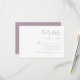 Este simples cartão de cercado RSVP de casamento moderno apresenta texto empoeirado de lavanda em um fundo branco. O título aparece na caligrafia na moda. Personalize o texto restante na fonte sans serif. O verso é uma lavanda poeirenta sólida.