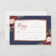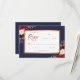 Gorgeous burgundy red floral marinho azul cor d'água azul de casamento rsvp design horizontal com sotaques falsos de folha de ouro rosa e escrita com letra de mão. O Convite de Casamento Correspondente está disponível na loja. Personalize com o texto do rsvp do casamento usando o menu editar.