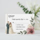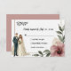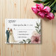Esta elegante placa de RSVP de casamento floral de aquarela é perfeita para um casamento moderno. A design romântica apresenta uma elegante estrutura floral de aquarela com uma ilustração noiva e noiva e caligrafia preta sobre fundo branco.