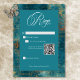 Cartão RSVP Casamento do Código QR do Dourado Damasco com Teal