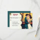 Este cartão RSVP de casamento elegante ao estilo dos quadrinhos é perfeito para um casamento moderno. O design retro apresenta uma ilustração vintage noiva e noiva e caligrafia preta em um fundo com o tema dos quadrinhos.