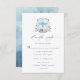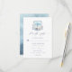 Este elegante cartão de rsvp costeiro apresenta uma crista de casamento de praia em aquarela com iniciais monográficas da noiva e do noivo, e a data de casamento na faixa da crista.