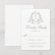 Convide seus convidados a responder em estilo com nosso cartão RSVP de casamento do Monograma do Crest Botânico Verde da Elegante Sage. Apresentando uma crista verde-salva com delicados sotaques botânicos que enquadram o monograma do casal, esta design oferece um aspecto sereno e eterno. Coordenar a caligrafia verde-sábio adiciona um toque elegante, enquanto o texto de RSVP personalizável permite que você adapte o texto à sua celebração. Um ajustado perfeito para casamentos de jardim, eventos ao ar livre ou paletas inspiradas na natureza.
