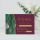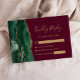 Cartão RSVP Casamento Dourado de Agate Burgundy, Emerald Green
