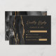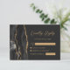 Cartão RSVP Casamento Dourado de Agate Negro Moderno