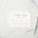 Cartão RSVP de casamento simples com um script de caligrafia dourada moderno com fundo branco (ou cor de sua escolha). Personalize a placa RSVP ouro com a data de resposta desejada, o personalizado aceita/declina a redação e as opções de refeição. O cartão RSVP de escolha de refeição caligráfica foi projetado para coordenar com nossa coleção de casamento Elegante Calliografia.