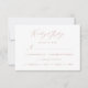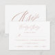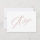 Esta elegante placa RSVP de casamento apresenta um moderno roteiro de ouro rosa que lê "RSVP" em um fundo branco. A frente da placa tem todos os detalhes de RSVP em tipografia rosa gold em um fundo branco. Por favor, veja o nosso compro I Love Weddingz para encontrar mais seleções nesta coleção. Desenhada por Susan Coffey.