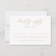 Elevem seu planejamento de casamento com esta elegante placa RSVP com caligrafia luxuosa em ouro em fundo branco, perfeita para casamentos em qualquer estação e adequada para comemorações formais e informais. Este design impressionante permite personalizar a data de resposta e personalizar a redação de aceitação/declina de acordo com o seu estilo único, com uma ousada inscrição dourada que garante clareza e uma estética sofisticada e refinada que aprimora qualquer tema de casamento. Quer você esteja planejando um casamento no inverno glamouroso, uma nova celebração de primavera, uma reunião radiante de verão, ou um caso quente de outono, esta placa CHic RSVP adiciona um toque de elegância de eterno enquanto dinamiza sem esforço suas respostas de convidado.