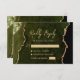 Cartão RSVP Casamento Dourado de Script Agate Verde-Oliva