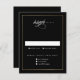 Esta Clássica Carta RSVP de Casamento Dourado Elegante é simples e versátil. Ele apresenta um design preto e branco chic com uma simples estrutura dourada, uma arte rsvp de script e um texto editável mínimo. Clique no botão editar para personalizar este design.