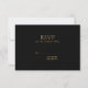 Este Cartão RSVP de Casamento de Coração Negro e Dourado Minimalista é uma forma elegante e na moda de reunir respostas de seus convidados. Apresentando um fundo negro moderno com um delicado coração de ouro, este design elegante complementa perfeitamente a sua suíte de convite para casamento. Com espaço para os convidados aceitarem ou recusarem, este cartão minimalista, mas sofisticado, garante um processo de RSVP fácil e organizado. Um eterno e detalhe refinado, ele adiciona um toque de elegância enquanto mantém seu planejamento de casamento perfeito.
