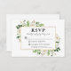 Cartão RSVP Casamento Dourado Floral Branco Verde